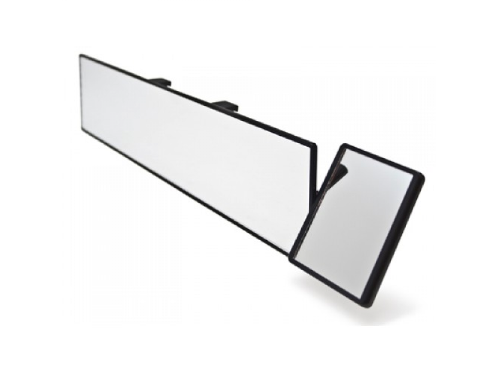 Универсальное двухсекционное зеркало заднего вида с самозажимными креплениями. Монтируется на основное внутрисалонное зеркало. Имеет дополнительную наклонно-поворотную секцию, которая может быть установлена на боковые стороны зеркала.